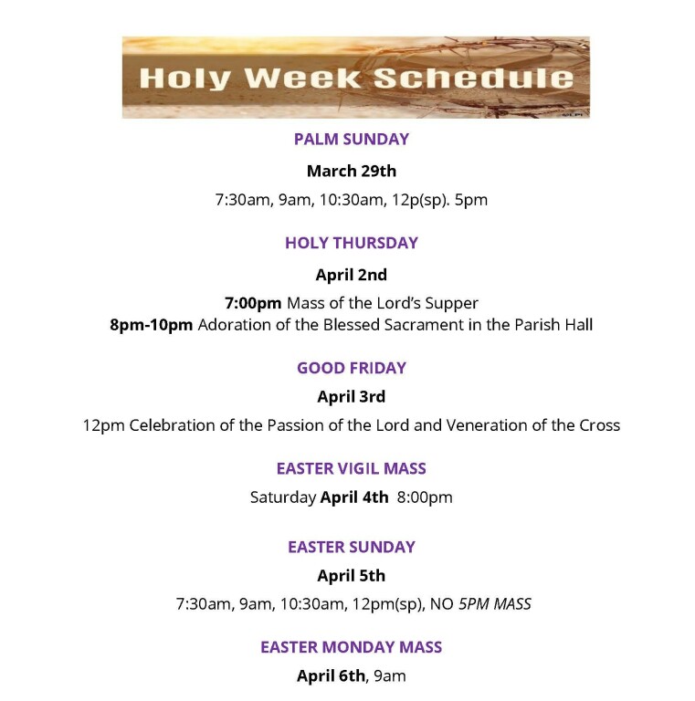 SUNDAY MASS: 7:30am, 9:00am, 10:30am (YouTube), 12pm (Español) and 5:00pm (Youth)