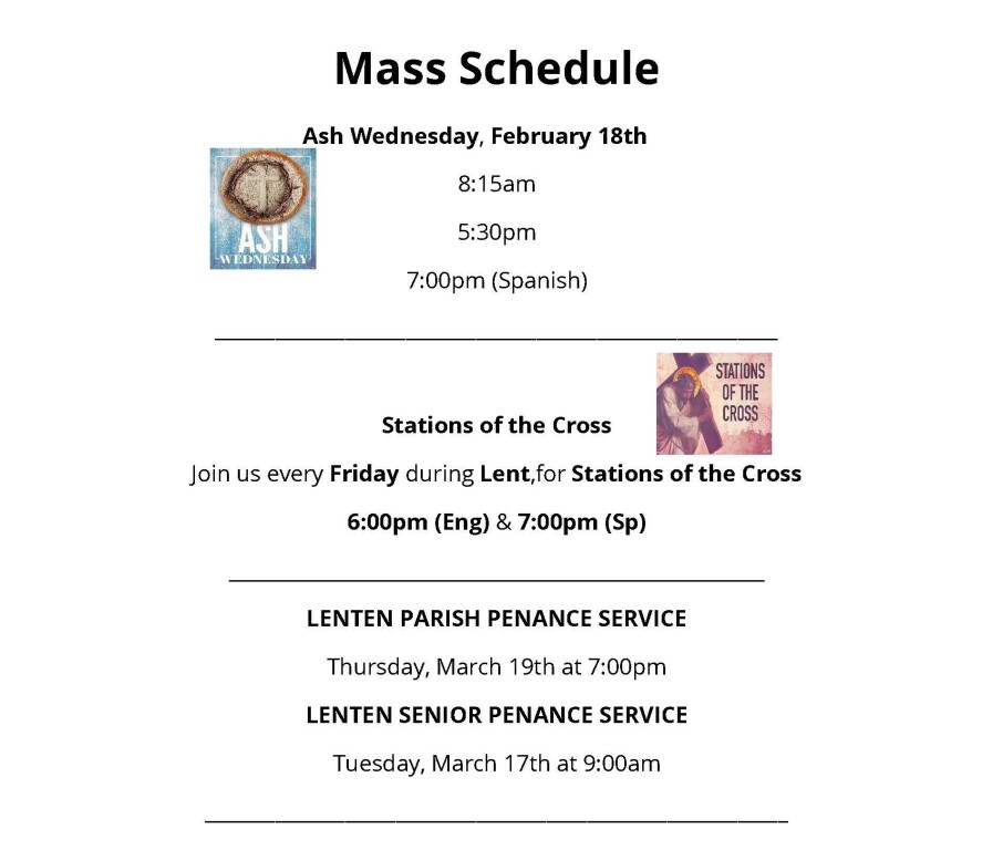 NO 5PM MASS ON SUNDAY FEBRUARY 8TH